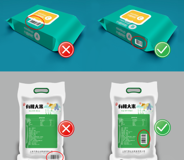 根据GB/T 14257-2009《商品条码条码符号放置指南》,条码与包装边缘间距有明确要求:最小8mm,最大100mm。位置不当不仅影响美观,更会导致扫描失败。